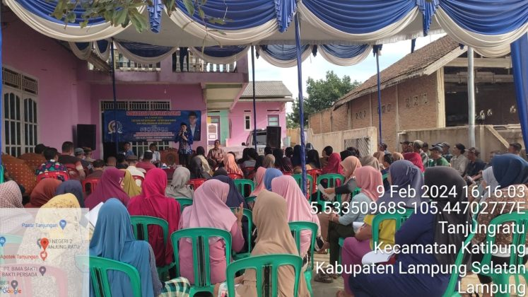 Kegiatan sosper yang digelar di dusun 01 Desa Tanjung Ratu Kecamatan Katibung Kabupaten Lampung Selatan itu dihadiri sejumlah perangkat Desa serta tokoh agama tokoh masyarakat, tokoh pemuda serta tamu undangan, Jumat (9/2/2024).