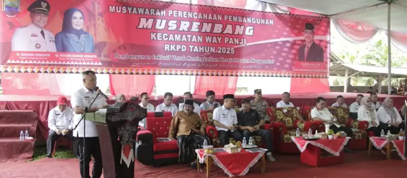 Bupati Lampung Selatan, H. Nanang Ermanto mengatakan, melalui Musrenbang ini seluruh pemangku kepentingan diharap memanfaatkan moment ini untuk dapat bermusyawarah, menyatukan visi misi untuk bisa memberikan suatu kesejahteraan serta pembangunan dan pertumbuhan di Lampung Selatan khususnya Kecamatan Way Panji.