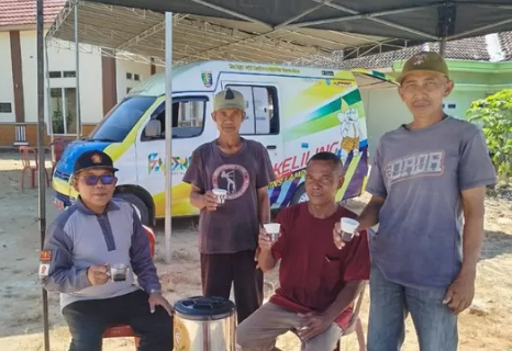 Lampung Selatan - Anggota DPRD Lampung Selatan, H. Dwi Riyanto memberi sambutan dengan aroma kopi panas yang disuguhkan gratis kepada warga yang tengah antri melakukan pembayaran pajak, Sabtu (10/5/2025).