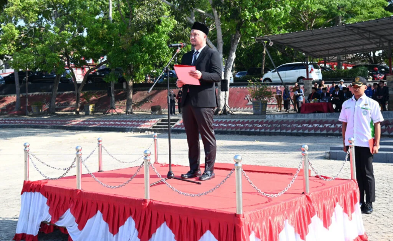 Lampung Selatan - Pelaksana Tugas (Plt) Bupati Lampung Selatan, Pandu Kesuma Dewangsa, memimpin upacara peringatan Hari Sumpah Pemuda ke-96, yang digelar di Lapangan Korpri, Kalianda, Senin (28/10/ 2024).