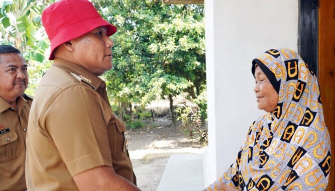 Lampung Selatan - Program bantuan bedah rumah tidak layak huni berupa uang tunai senilai Rp.20 juta diserahkan secara simbolis oleh Bupati Lampung Selatan Nanang Ermanto kepada Misiem (60) yang merupakan warga Desa Sidowaluyo, Kecamatan Sidomulyo, pada Selasa (18/7/2023).