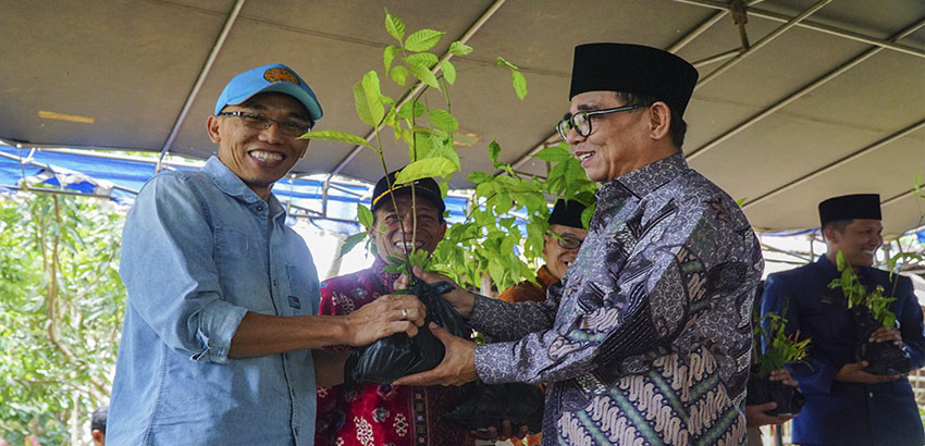 Bupati Kepahiang Dr. Ir. Hidayattullah Sjahid, MM, membagian pohon secara simbolis kepada Camat dan Kades sekitar.