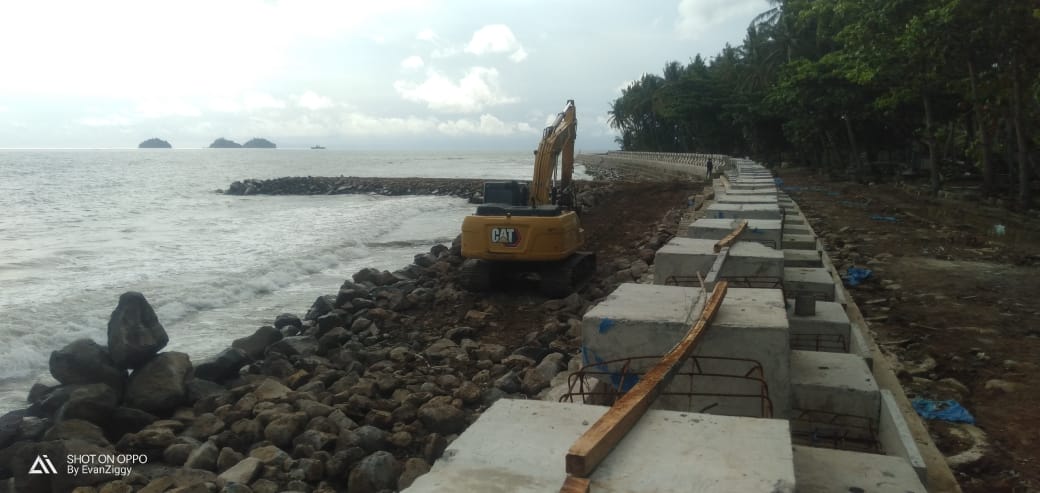 "Alhamdulillah pekerjaan breakwater (pemecah gelombang) berjalan dengan lancar sehingga sampai saat ini pekerjaan kita tidak ada hambatan apapun,