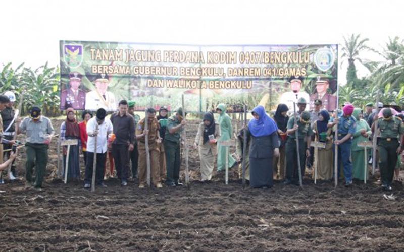 Walikota Bengkulu saat Gerakan Tanam Jagung Hibrida bersama pemerintah provinsi, Danrem, Dandim, Lanal, Camat dan Lurah serta petani di Kelurahan Kandang Mas, Kecamatan Kampung Melayu.