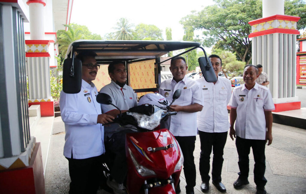 Lampung Selatan - Bupati Lampung Selatan H. Nanang Ermanto menyerahkan bantuan dua unit kendaraan roda tiga untuk Penyandang disabilitas di halaman kantor bupati setempat, pada Kamis (30/3/2023).