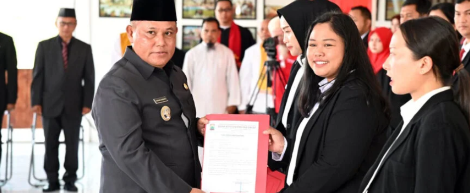 Lampung Selatan - Bupati Lampung Selatan, H. Nanang Ermanto melantik sebanyak 698 Pejabat Fungsional di lingkungan Pemerintah Kabupaten (Pemkab) Lampung Selatan, di Aula Sebuku, rumah dinas bupati setempat, Jumat (19/7/2024).