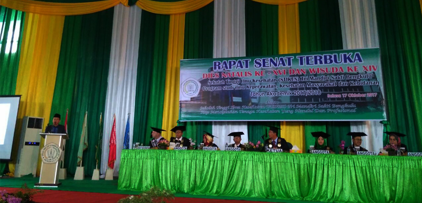 Dies Natalis ke-XVI dan Wisuda ke XIV Sekolah Tinggi Ilmu Kesehatan (STIKES) Tri Mandiri Sakti Bengkulu di Gedung STQ, Selasa(17/10/2017)