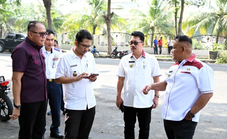 Lampung Selatan - Bupati Lampung Selatan, H. Nanang Ermanto meninjau lingkungan Pemda tepatnya di kawasan Bundaran Tugu Adipura, komplek Pemda setempat, pada Kamis (27/6/2024).